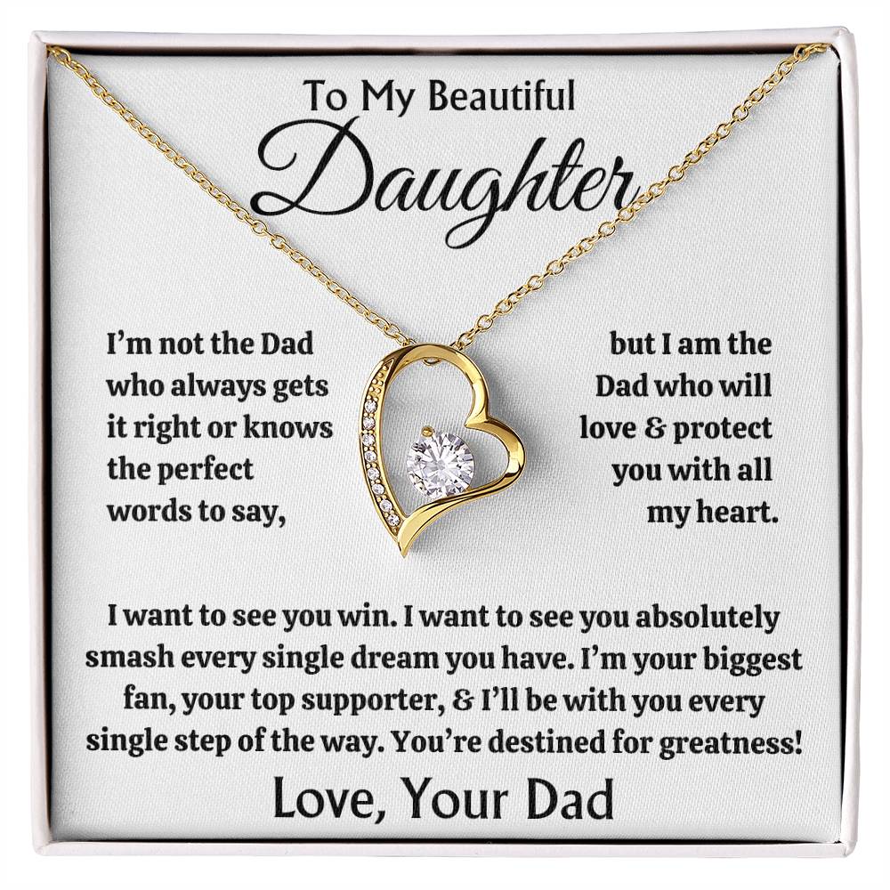"To My Beautiful Daughter,Ā Iām not the Dad who always gets it right or knows the perfect words to say, but I am the Dad who will love & protect you with all my heart.Ā I want to see you win. I want to see you absolutely smash every single dream you have. Iām your biggest fan, your top supporter, & Iāll be with you every single step of the way. Youāre destined for greatness!Ā Love, Your Dad."