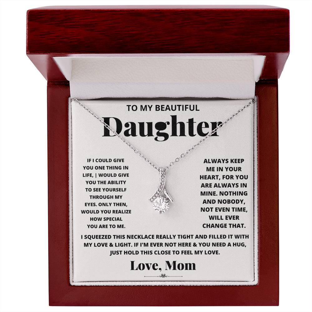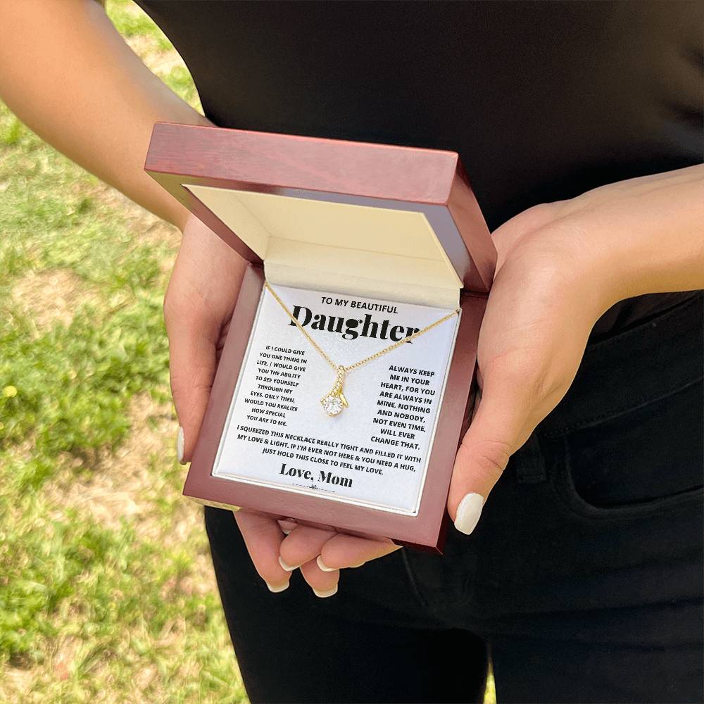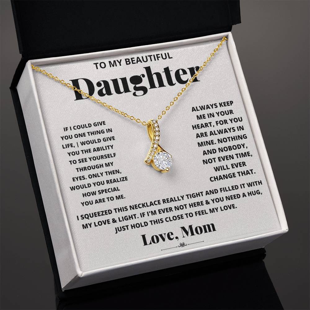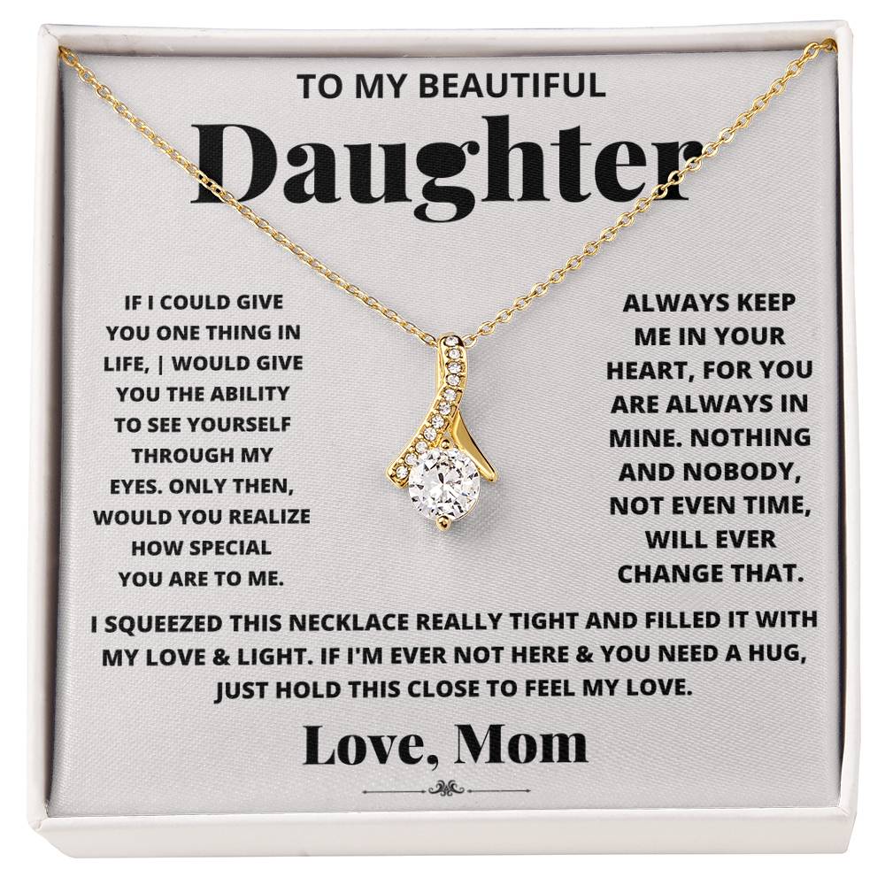 IF I COULD GIVE YOU ONE THING IN LIFE, I WOULD GIVE YOU THE ABILITY TO SEE YOURSELF THROUGH MY EYES. ONLY THEN, WOULD YOU REALIZE HOW SPECIAL YOU ARE TO ME. ALWAYS KEEP ME IN YOUR HEART, FOR YOU ARE ALWAYS IN MINE. NOTHING AND NOBODY, NOT EVEN TIME, WILL EVER CHANGE THAT. I SQUEEZED THIS NECKLACE REALLY TIGHT AND FILLED IT WITH MY LOVE & LIGHT. IF I'M EVER NOT HERE & YOU NEED A HUG, JUST HOLD THIS CLOSE TO FEEL MY LOVE.