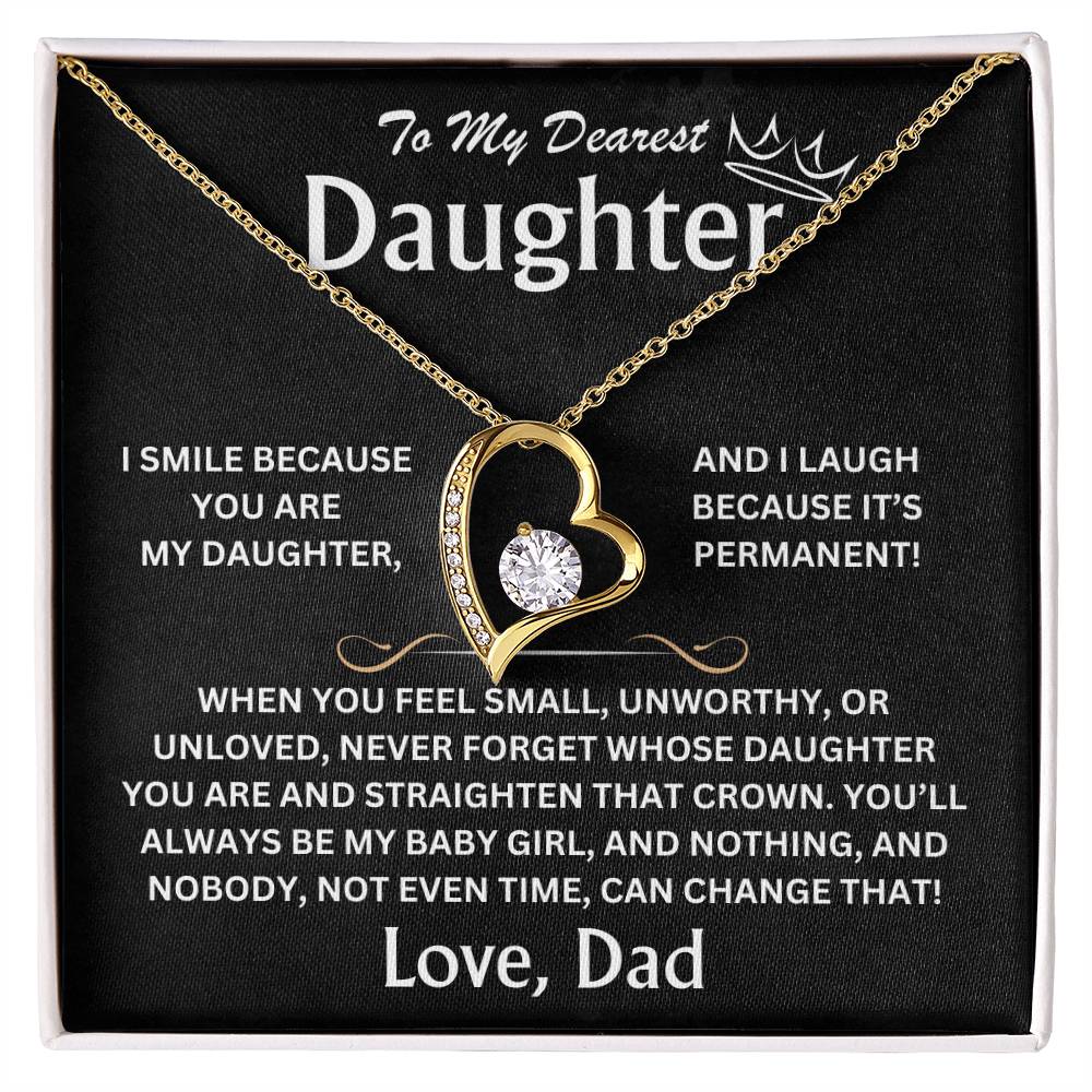 When you feel small, unworthy, or unloved, never forget whose daughter you are and straighten that crown. Youāll always be my baby girl, and nothing, and nobody, not even time, can change that!"