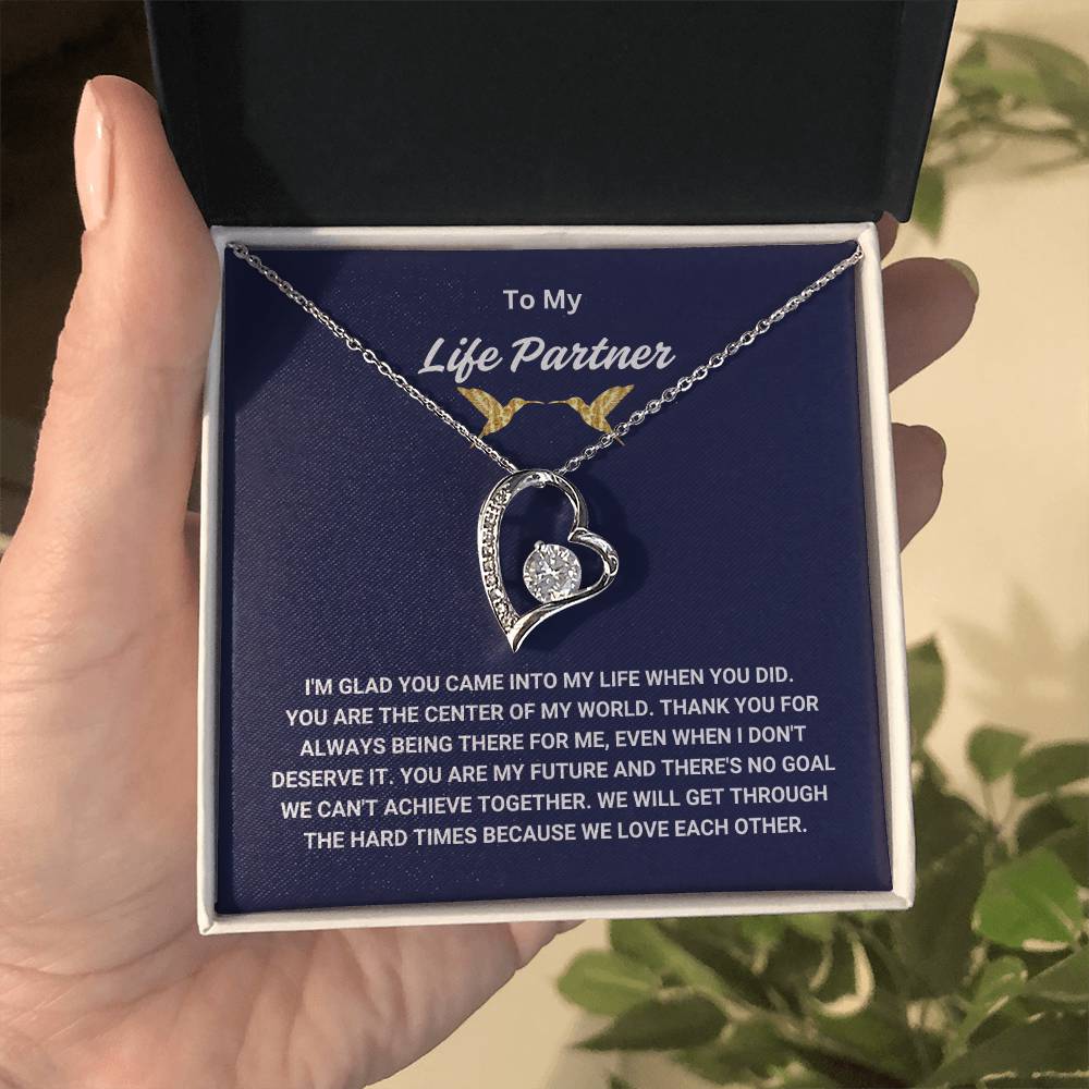 "TO MY LIFE PARTNER - I'm so grateful you came into my life when you did. You are the center of my world, and I cherish every moment with you. Thank you for always standing by my side, even when I fall short. You are my future, and together, there is nothing we can't overcome. Our love will carry us through any challenge."