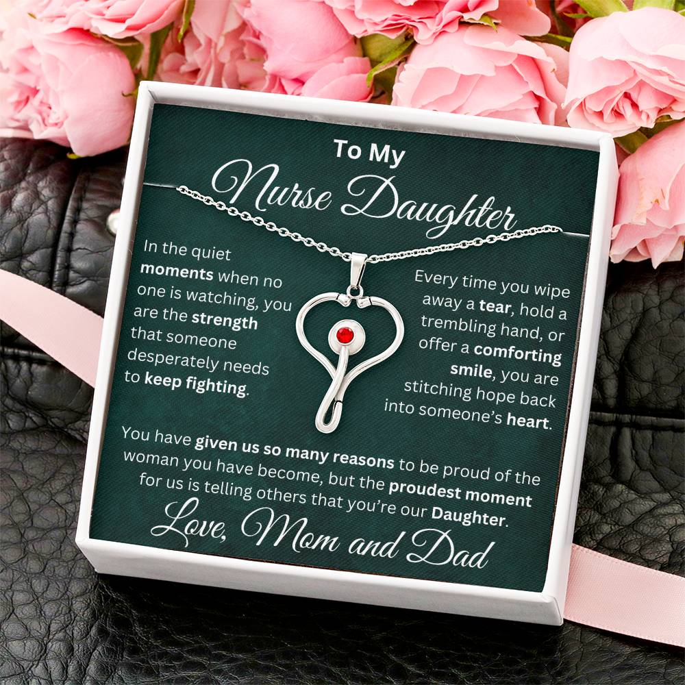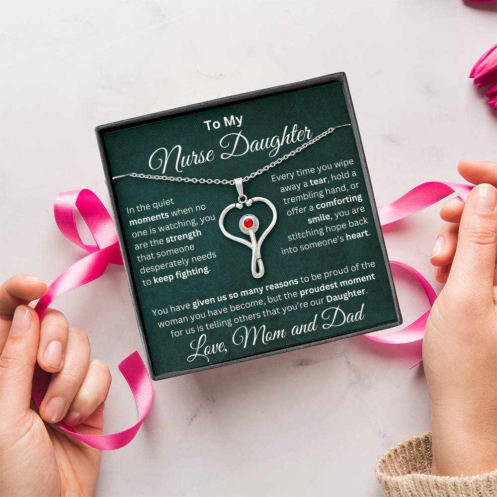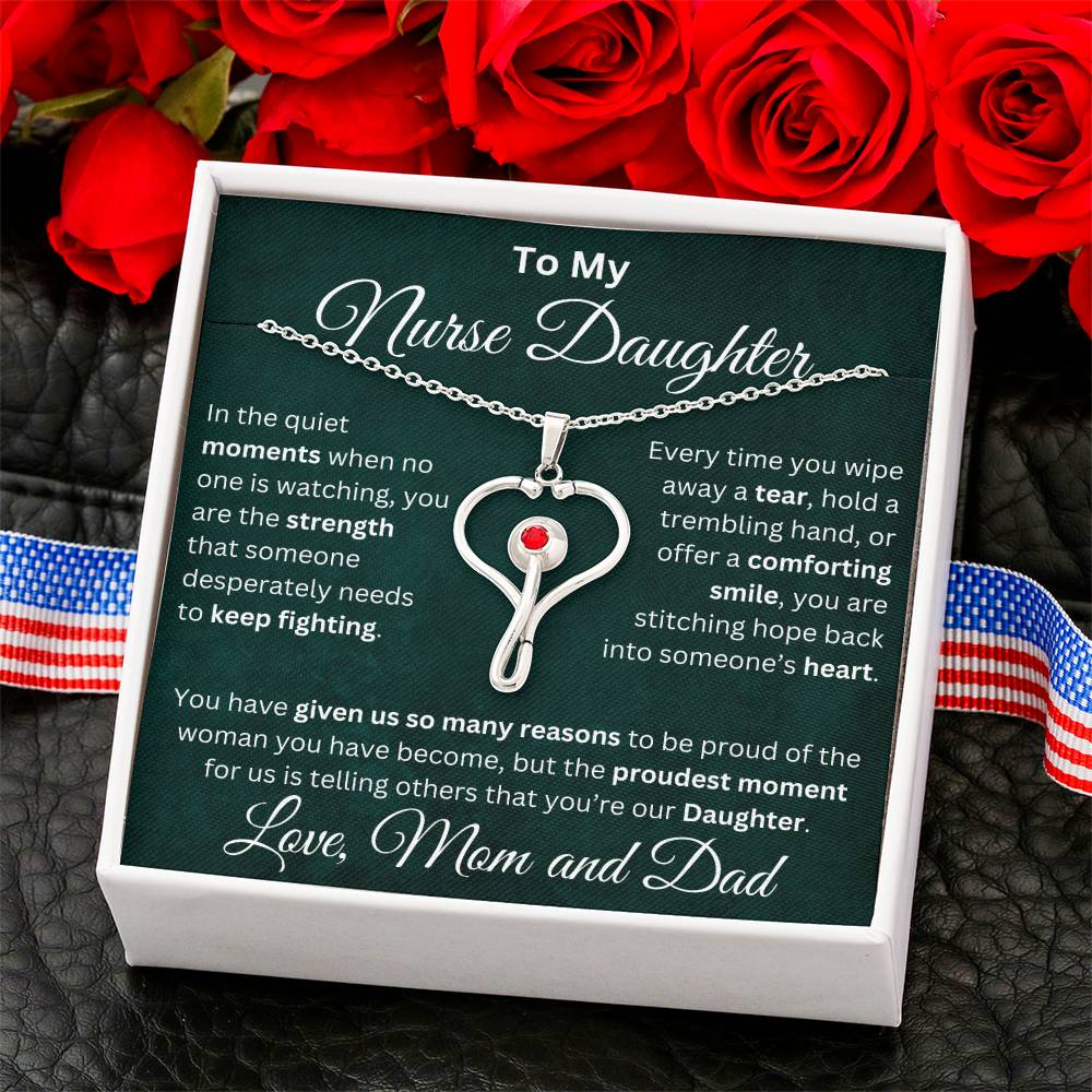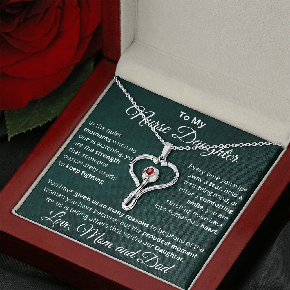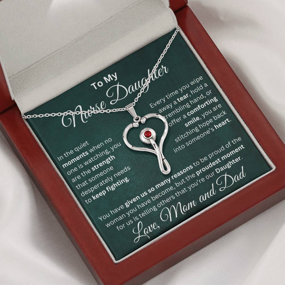 Celebrate your nurse daughter’s strength, compassion, and dedication with this stunning heart-shaped stethoscope necklace.👩⚕️ 💝
