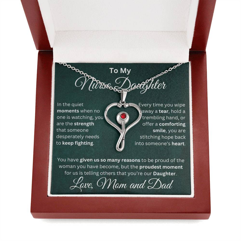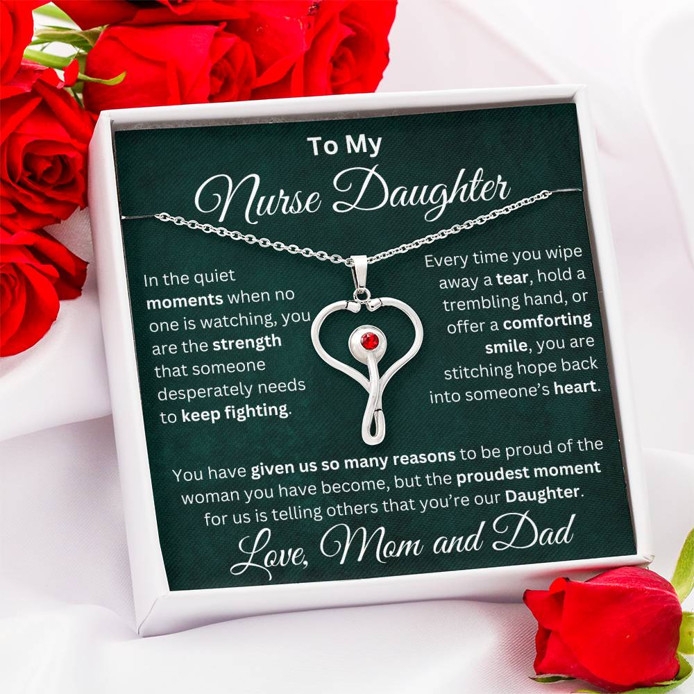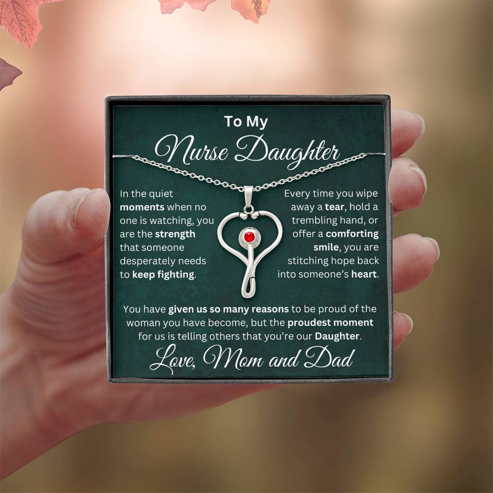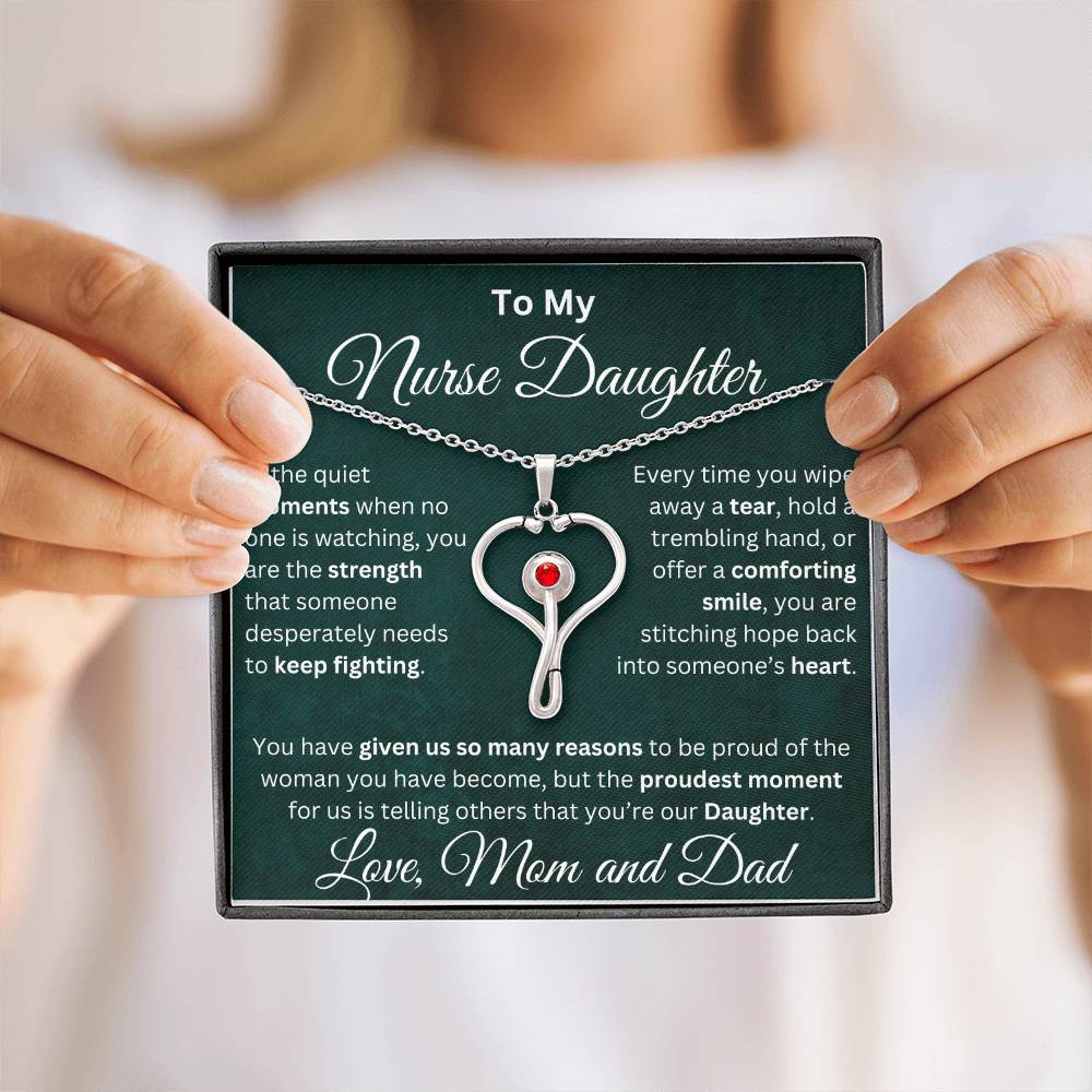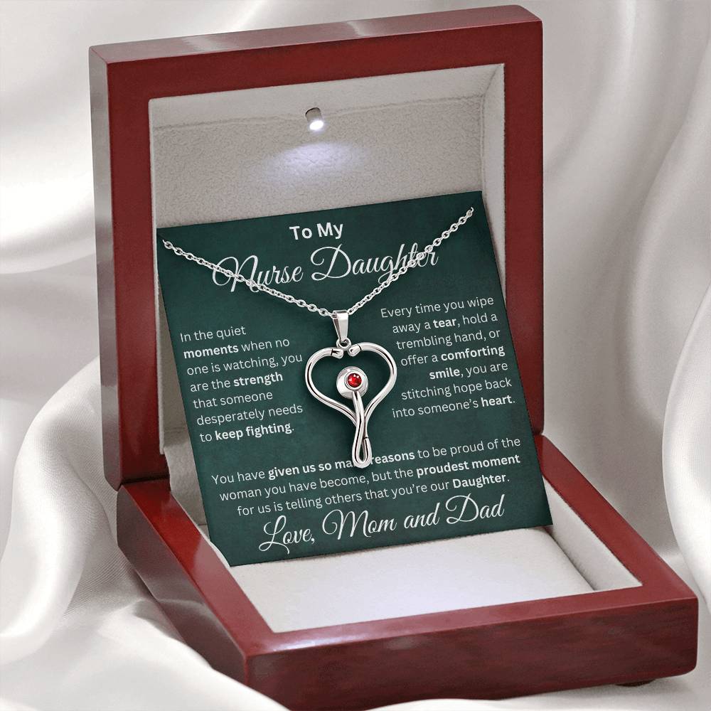 Celebrate your nurse daughter’s strength, compassion, and dedication with this stunning heart-shaped stethoscope necklace.👩⚕️ 💝