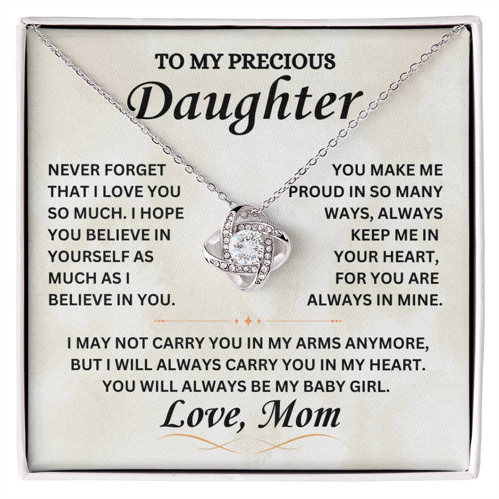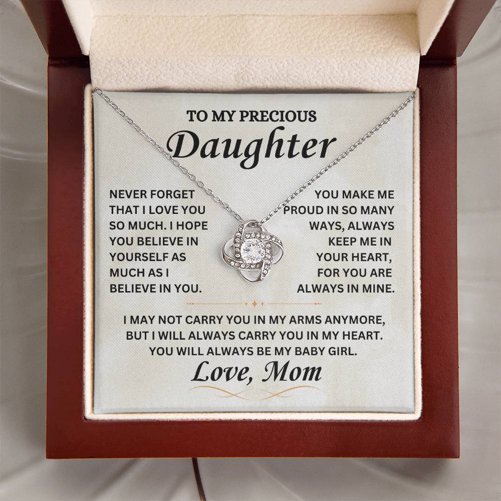 To My Precious Daughter - Love Mom - Love Knot Necklace - TJ067