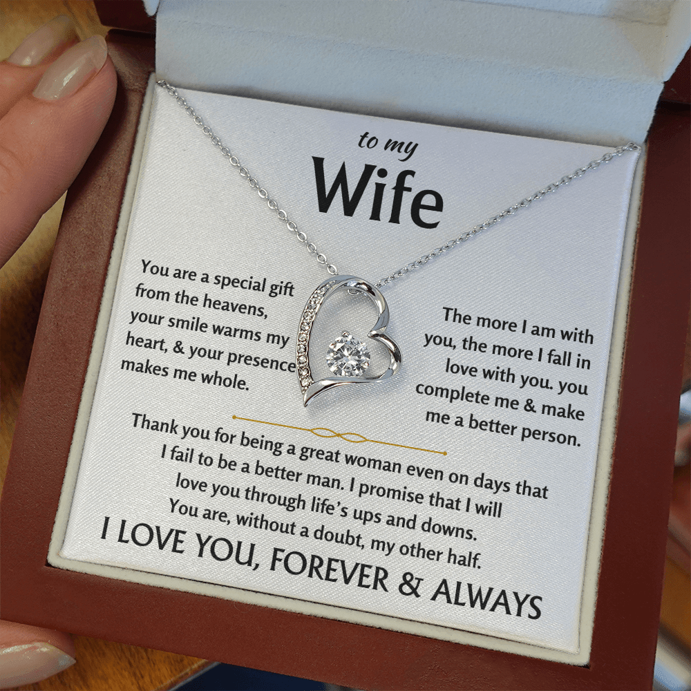 This artisan-crafted Forever Love Necklace is a timeless expression of love that she'll treasure forever. Made with love in the USA, it features a stunning heart-shaped pendant adorned with a 6.5mm round cut cubic zirconiaāsymbolizing your never-ending love.