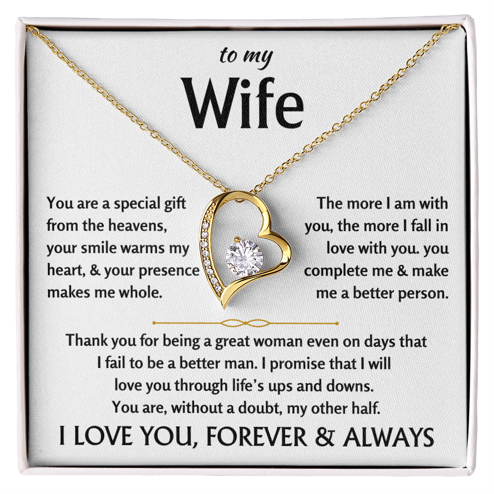 "You are a special gift from the heavens, your smile warms my heart, & your presence makes me whole. The more I am with you, the more I fall in love with you. You complete me & make me a better person.