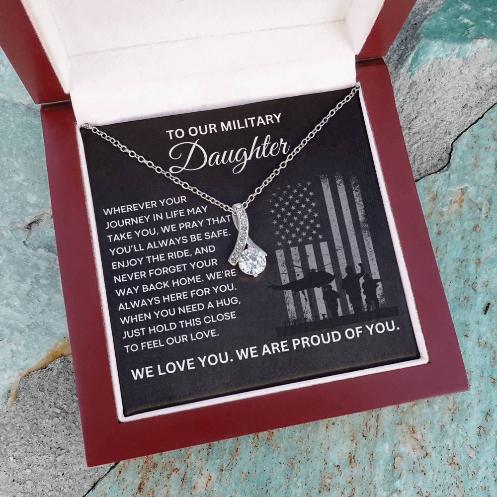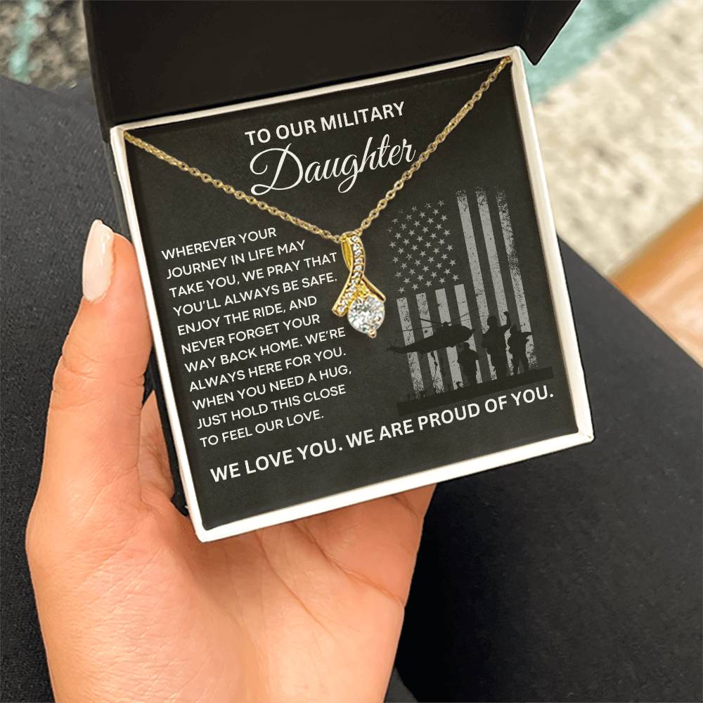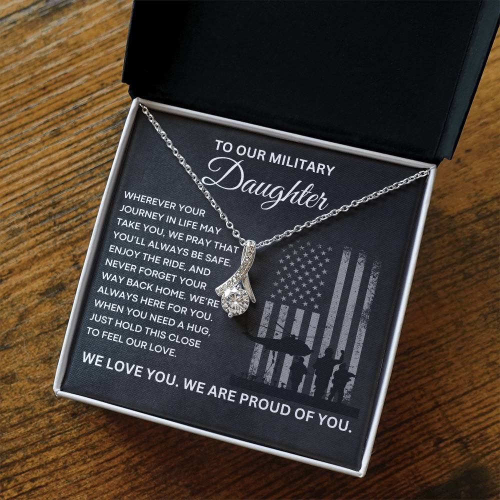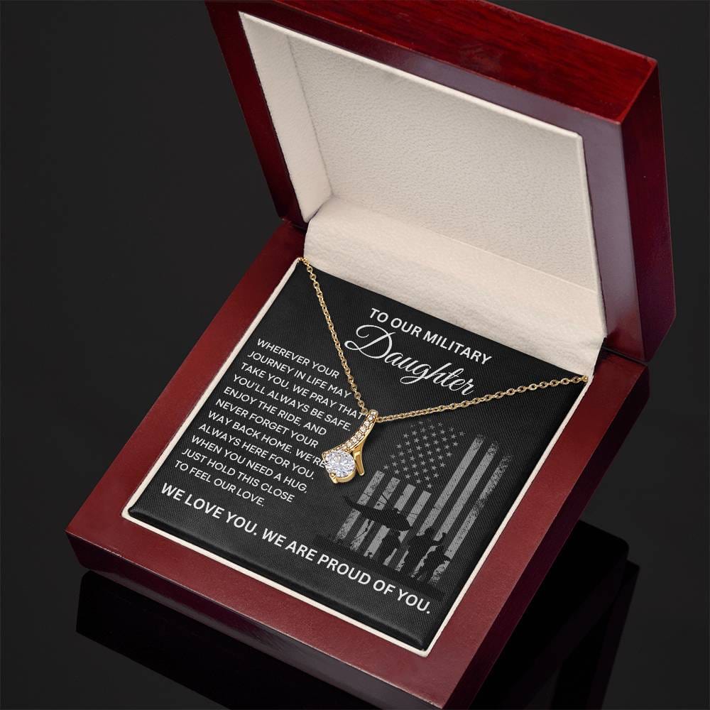 Perfect for birthdays, deployment send-offs, or just as a reminder of your unwavering love, this necklace set will be a cherished keepsake for your military daughter.