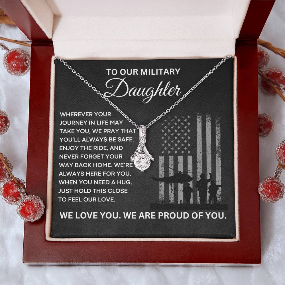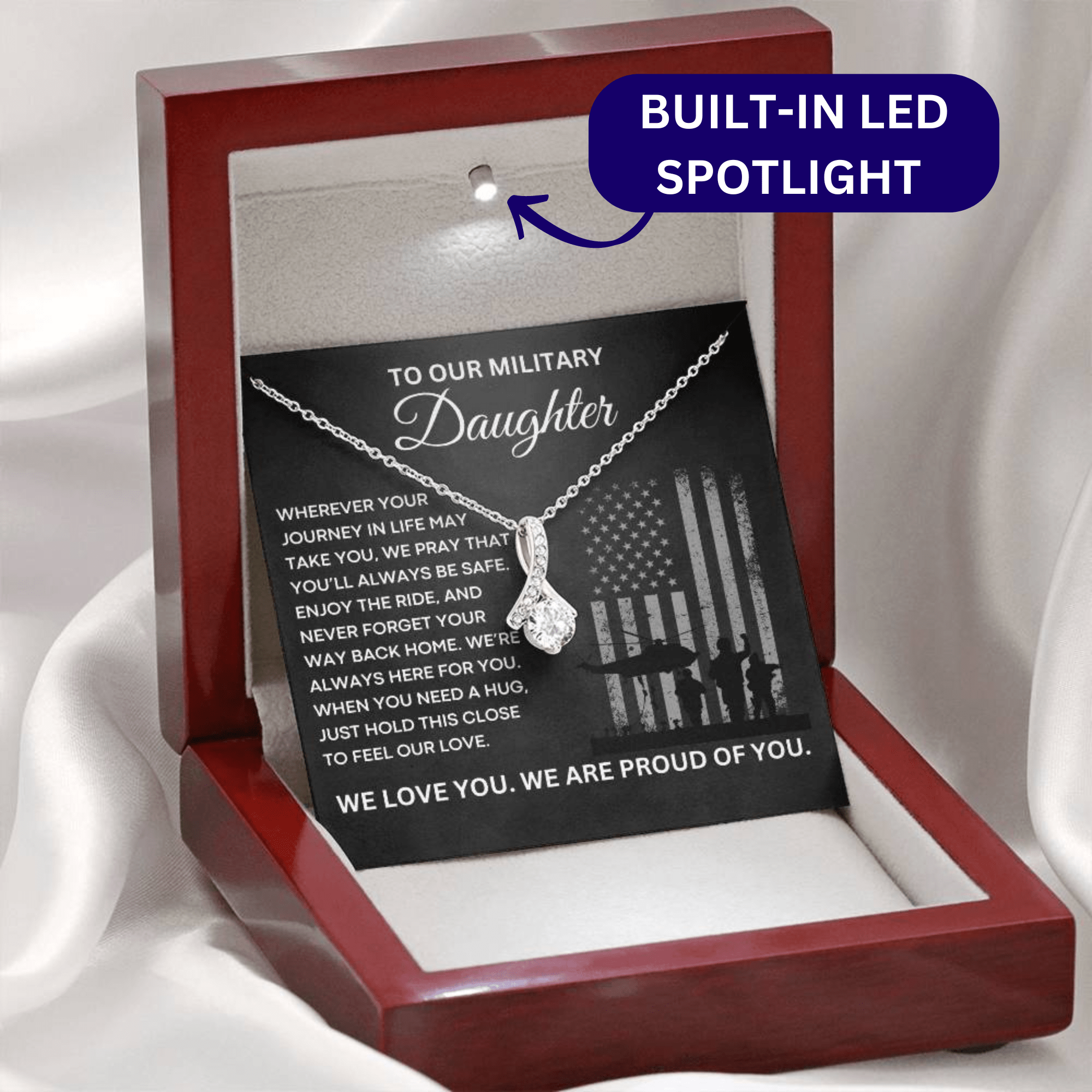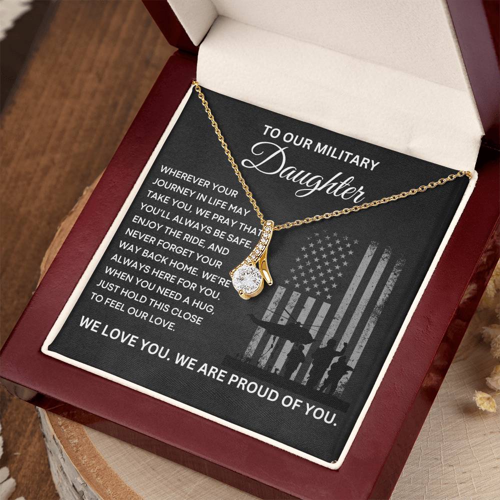 Perfect for birthdays, deployment send-offs, or just as a reminder of your unwavering love, this necklace set will be a cherished keepsake for your military daughter.