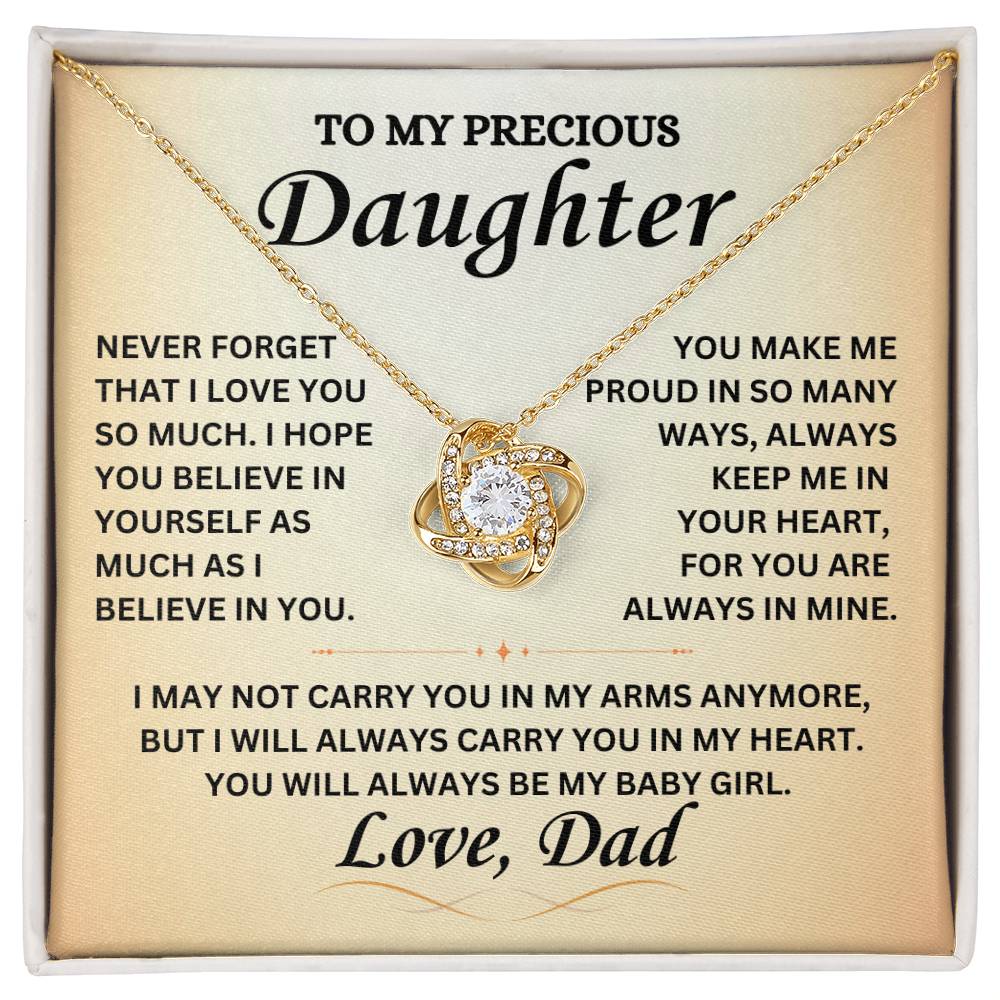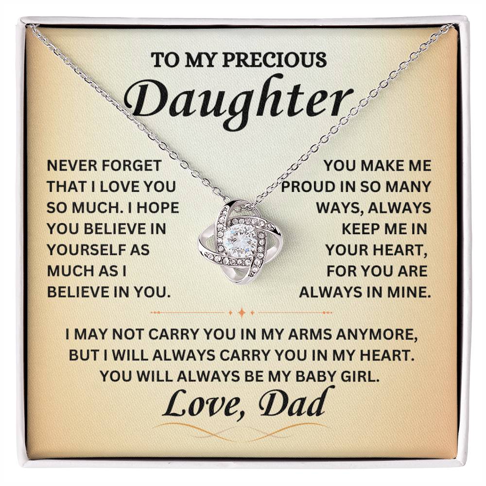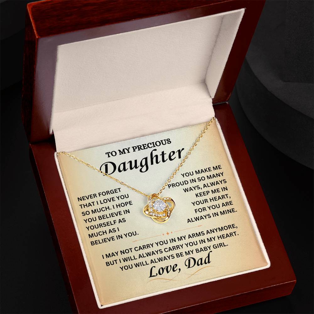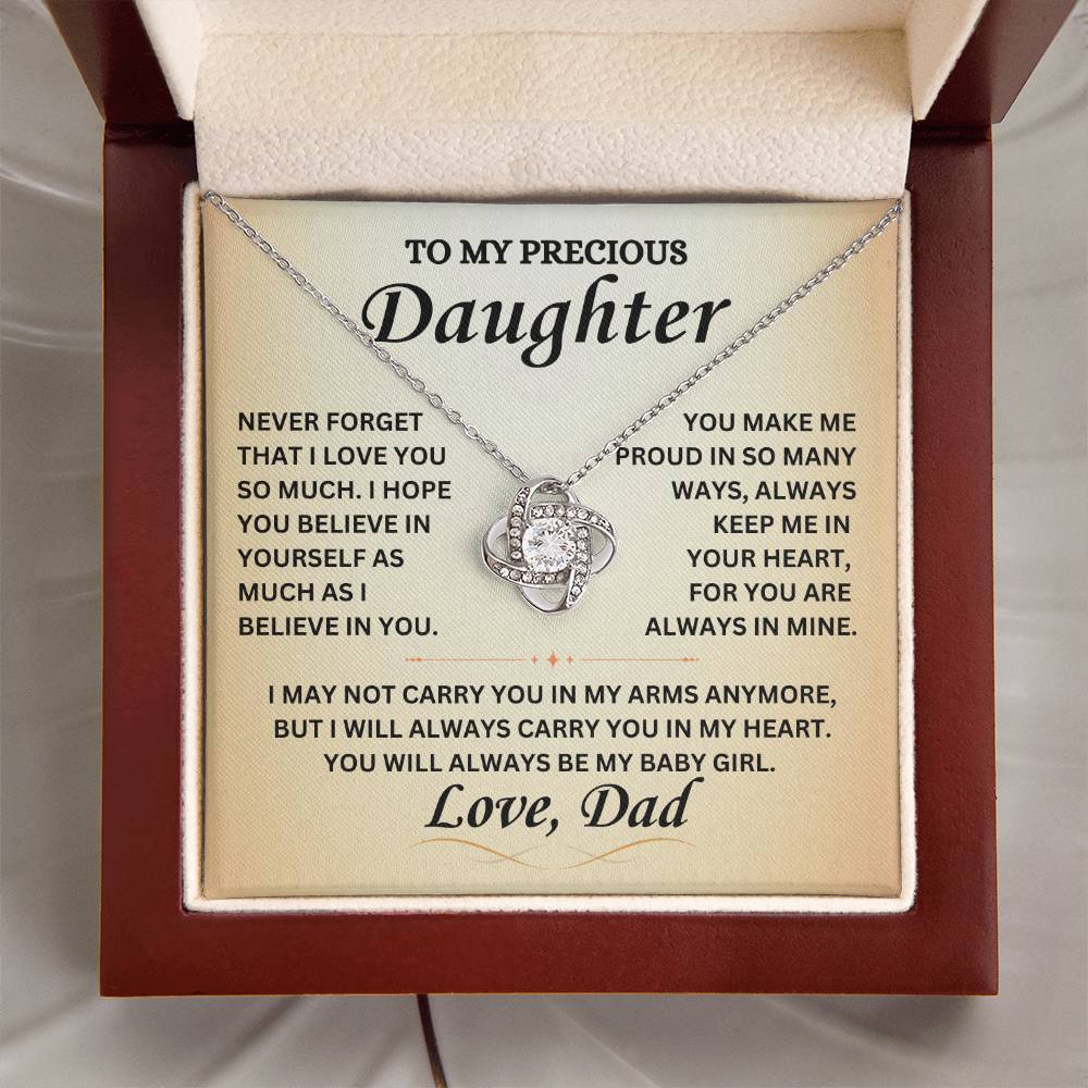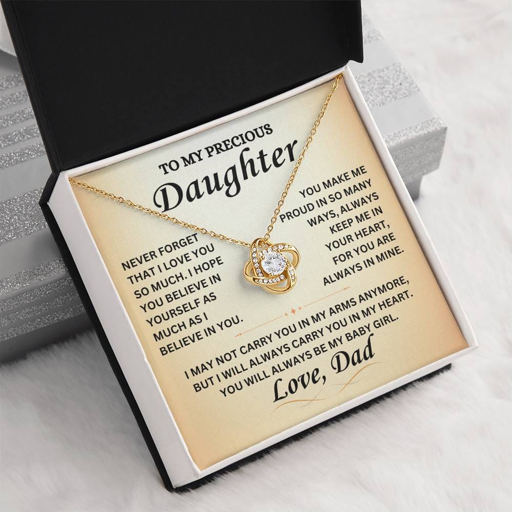 "To My Precious Daughter" Artisan-Crafted Love Knot Necklace