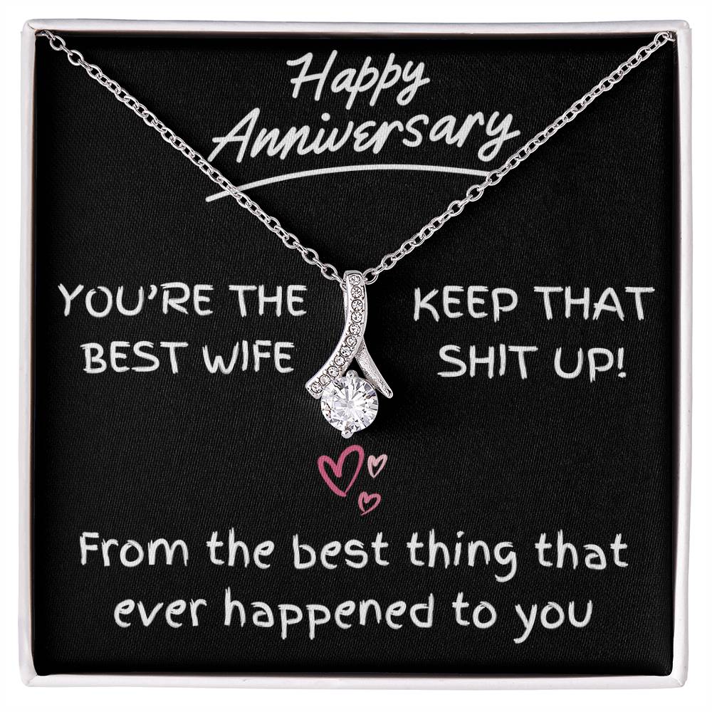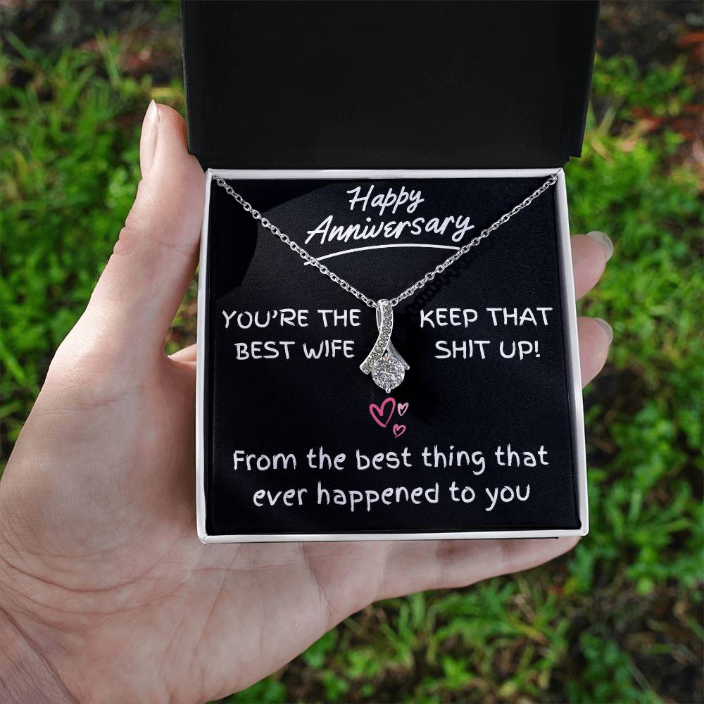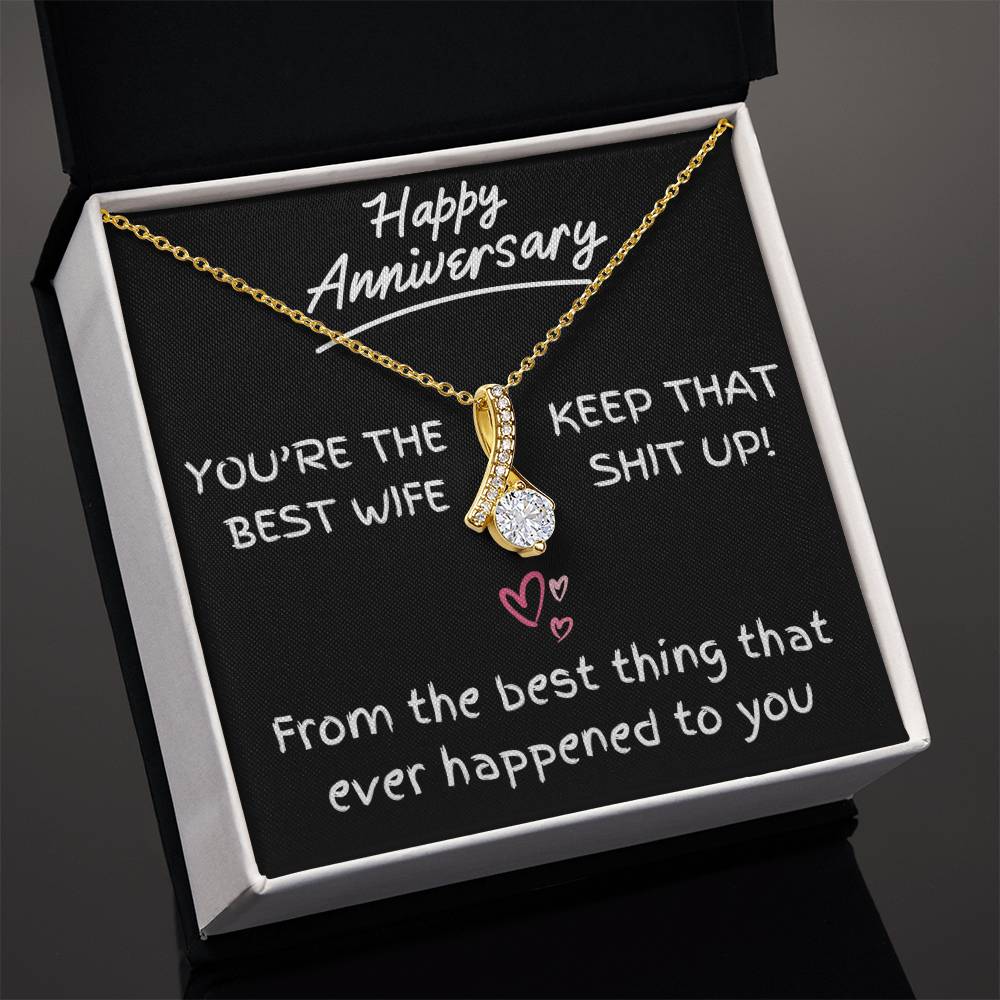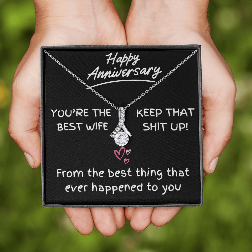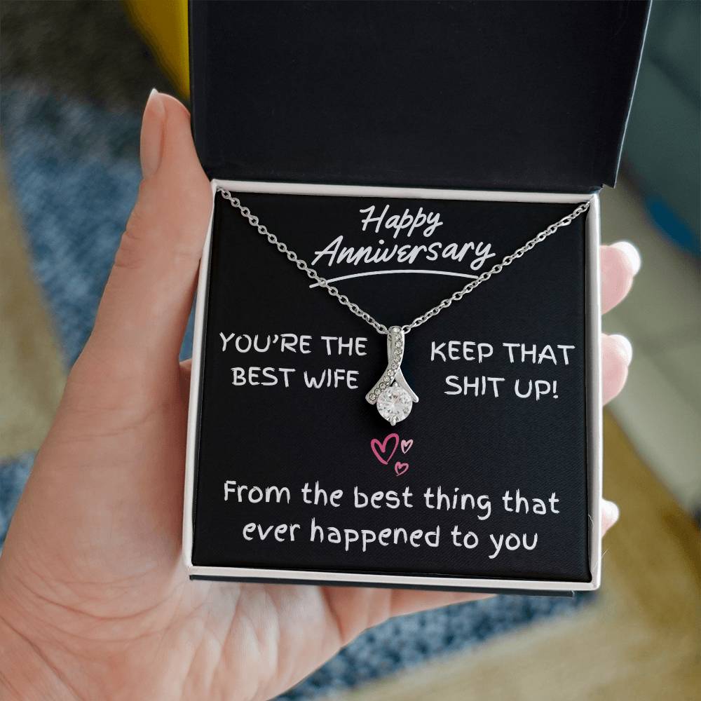 This cheeky necklace gift set comes with a playful message card that says: "You're the best wife. Keep that shit up!" It's the perfect blend of humor and affection, capturing the fun and love you share.